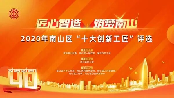 2020年是深圳经济特区建立40周年,因人才而兴的深圳从曾经的小渔村蜕变成国际性大都市、粤港澳大湾区核心、中国特色社会主义先行示范区。2020年也是新冠病毒疫情爆发、全民英勇抗疫的非凡之年,在抗击新冠病毒战“疫”中,深圳南山“智”造凸显科技力量,各行业人才、工匠通过智慧和奋斗,为助力全球抗疫贡献南山力量,体现南山担当。为弘扬工匠精神,选树工匠榜样,营造创新争先的良好氛围,南山区总工会开展南山区“十大创新工匠”评选活动。活动以“匠心智造,筑梦南山”为主题。活动由南山区总工会主办,南山区人才工作局、南山区科技创新局、南山区人力资源局、南山区工商联、南山区企业服务中心等共同协办。